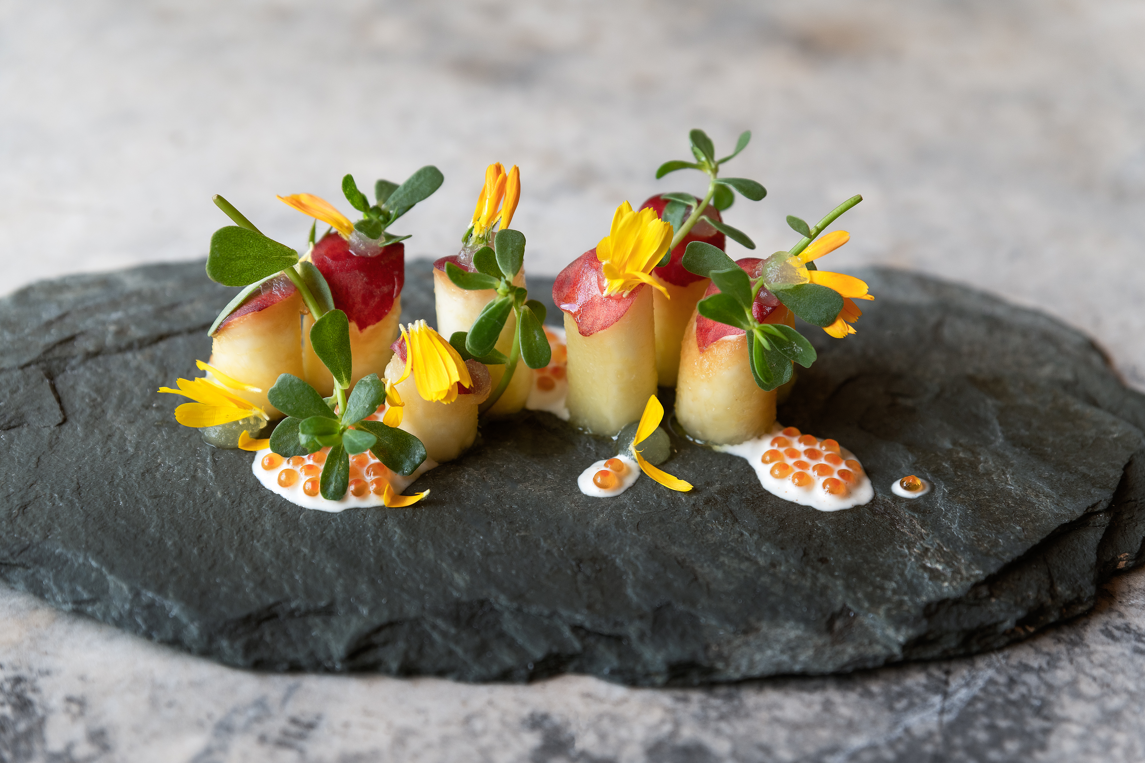 Royal poultry, orchards, kitchen gardens and gifts from the Mediterranean shore, naturally inspire our Chef, and his brigade. Pyrenean grasslands prodigalize his recipes with fabulous lamb, wood mushrooms or traditional catalan snails. As our Chef renews his menu regularly, You may pop in several times in the season !