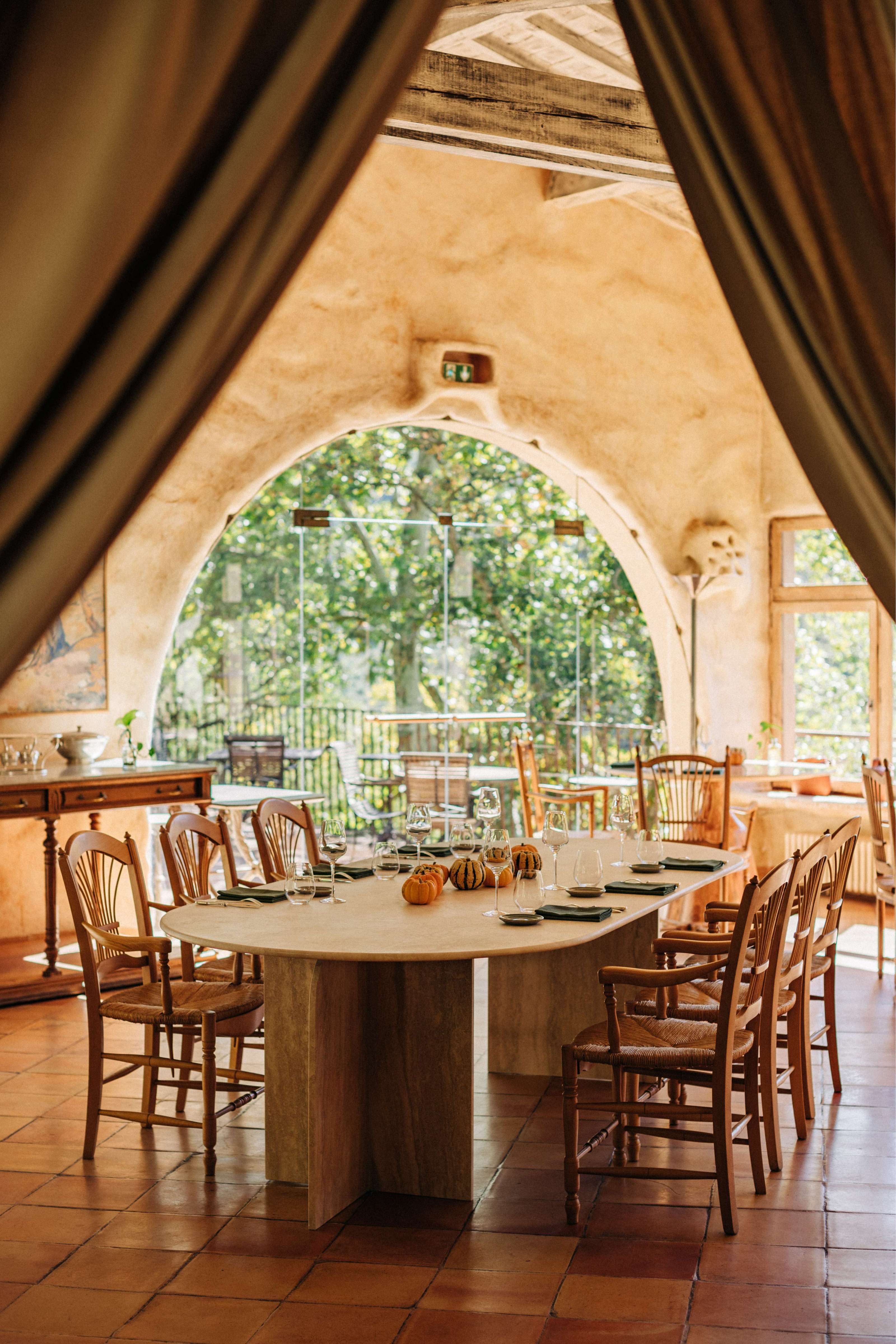 Nestled on the foothills of the Castle, between patios and water, the Restaurant plays a South melody with its“hacienda” like setting. The open-hearth fireplace lights up with golden glints of brass and antique furniture, hunted by the Landlady.